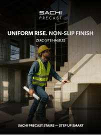 The new visual identity draws inspiration from engineering precision and architectural strength — representing the synergy between steel and concrete. The logo system and design language convey stability, innovation, and care, while maintaining distinct recognition for both Sachi Steel and Sachi Precast. The identity encapsulates the idea of “Strength with Care” — a philosophy rooted in reliability and responsibility across every product and project.