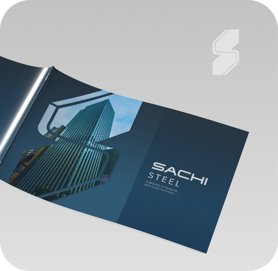 hrough competitor analysis and brand discovery workshops, we identified that Sachi Steel needed an identity that reflected engineering precision, reliability, and structural strength. The earlier design language lacked authority and emotion — it communicated product utility but not brand character. The new identity was built to look corporate yet grounded, balancing industrial sharpness with approachability. We defined the brand voice to be articulate, professional, and assertive, while maintaining an undertone of trust. The visual design, from the metallic “S” emblem to typography, symbolizes strength refined by care — aligning perfectly with Sachi’s philosophy and product excellence.