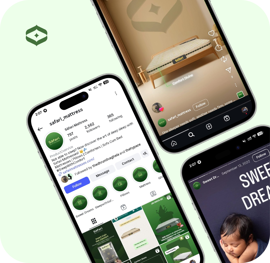Now that the brand identity and messaging is formulated, the first touchpoint which needed the rewamp was the social media account of Safari Mattresses. We revamped it in a way that everything is cohesive, consistent and upto the benchmark.