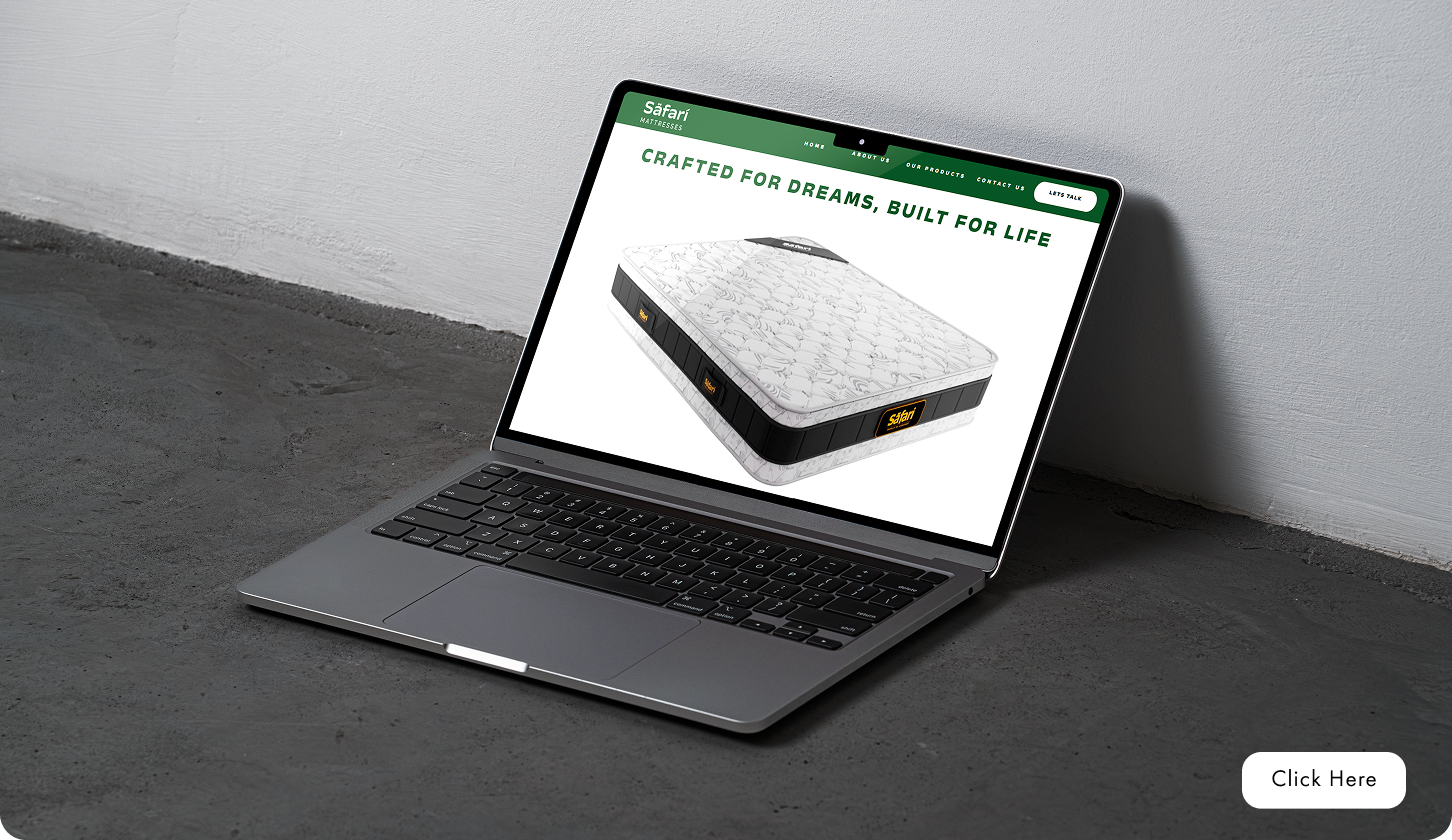 The Safari Mattresses website was designed to reflect the brand’s approachable, reliable, and premium personality. Emphasis was placed on clean layouts, intuitive navigation, and immersive product visuals, including 3D mattress layers, to showcase quality and comfort. The design combines modern aesthetics with consistent brand messaging, ensuring customers and dealers instantly recognize Safari’s identity. Every element—from typography and color palette to imagery and content—reinforces trust, comfort, and brand recall, creating a cohesive digital experience that complements the offline brand presence.