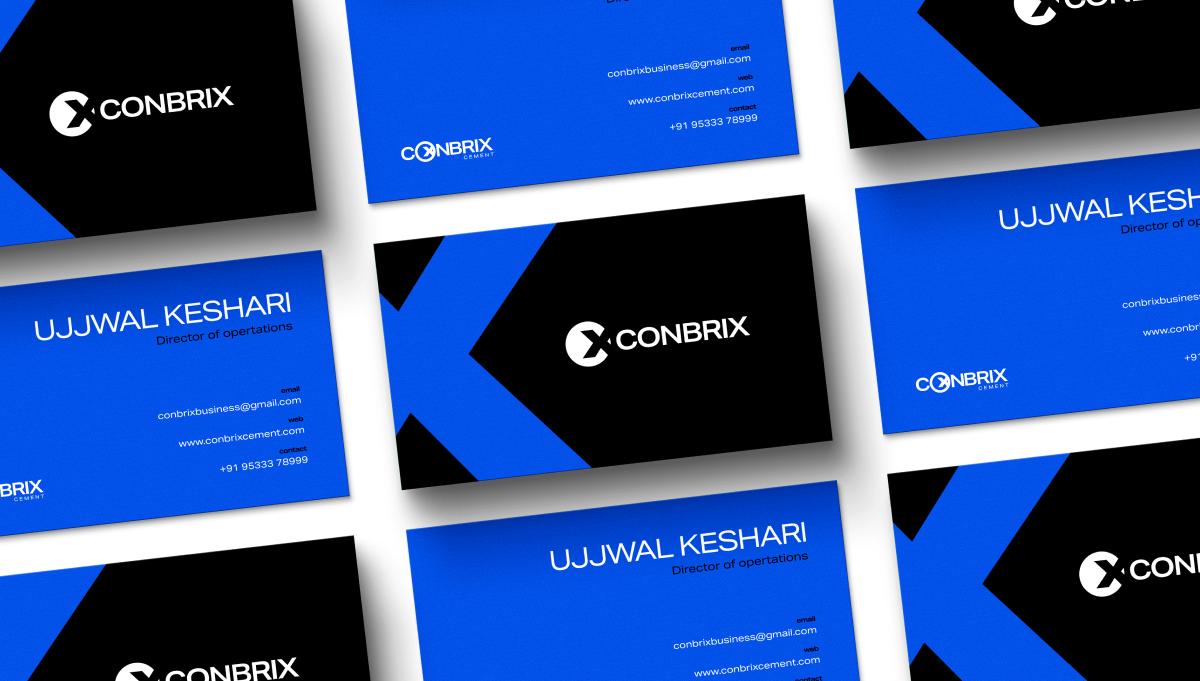 For Conbrix, we crafted a bold and structured visual identity that reflects the strength and precision of the cement industry. The logo integrates the letters ‘C’ and ‘X’ within negative space, creating a distinctive and balanced mark that feels both dynamic and grounded. A powerful palette led by deep black and strong blue establishes impact and trust, while neutral greys subtly reflect the rigidity and robustness of cement itself. We further strengthened the identity through a custom visual pattern derived from the ‘X,’ creating a recognizable and scalable brand language. The typography was chosen to feel modern, clean, and authoritative, ensuring the brand communicates confidence and industrial credibility across every execution.