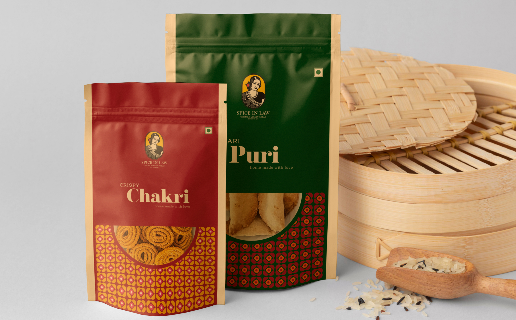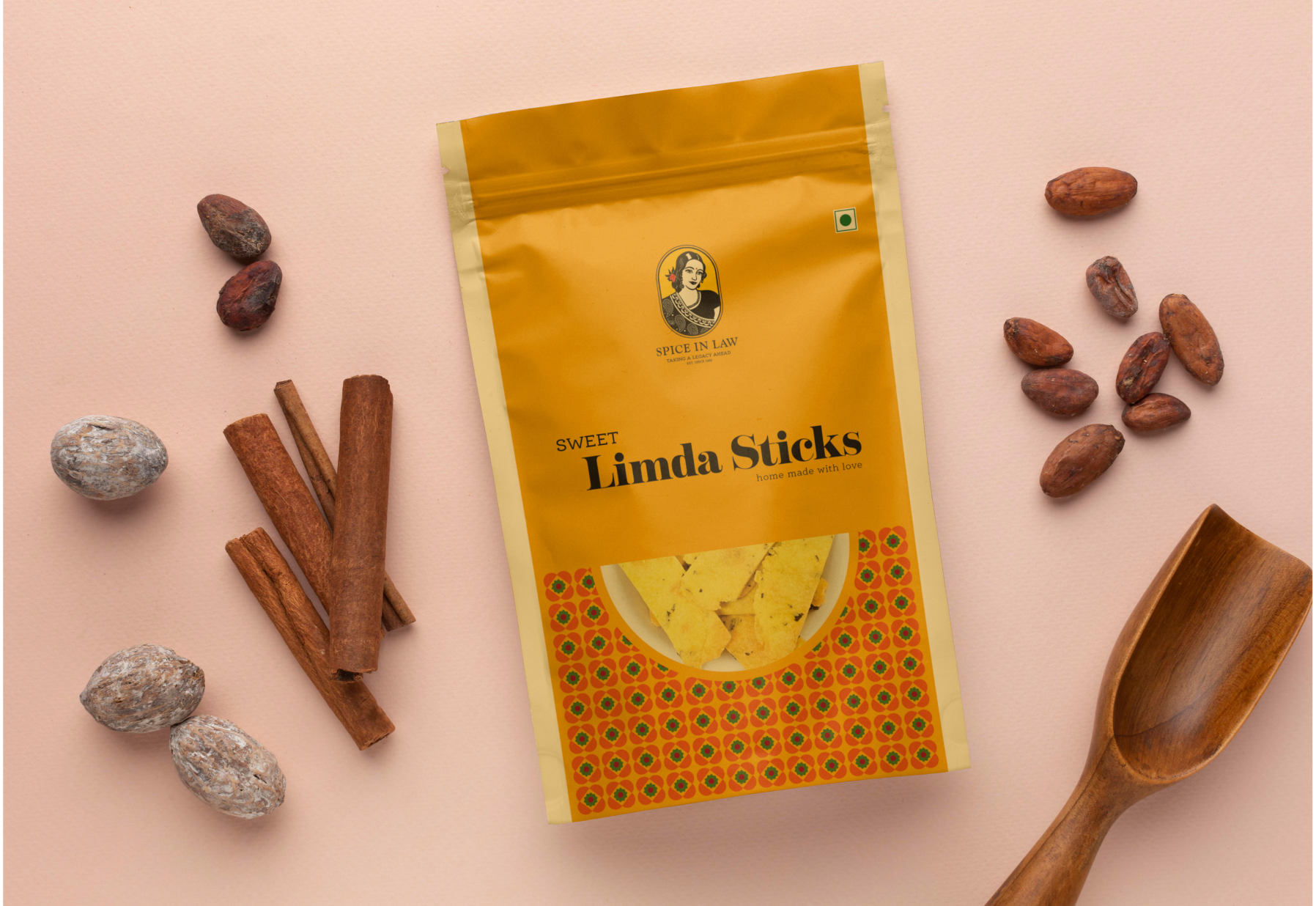 For Spice in Law, we developed a culturally rich visual identity inspired by Indian symbolism and traditional craftsmanship. Circular and organic forms were incorporated to reflect unity, heritage, and the handmade nature of the products, while structured geometric elements added balance and reliability. The logo features a lady figure symbolizing nurturing care and generational legacy, reinforcing the emotional foundation of the brand. A vibrant color palette inspired by saffron, turmeric, red, green, and royal blue ensured strong cultural recall and shelf impact. We extended this identity into packaging design, creating visually striking yet heritage-driven packs that combine traditional patterns with structured layouts. The result is a cohesive brand system that feels authentic, vibrant, and premium — both on the shelf and across all touchpoints.